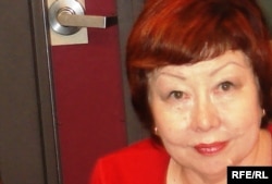 Ақын Ақұштап Бақтыгереева Азаттық радиосының Қазақ қызметіне сұхбат беріп отыр. Прага, 2 қыркүйек 2008 жыл.