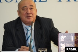 Қажығұмар Шабданұлының қызы Жайнар (сол жақта) және жазушы Сұлтанәлі Балғабай Қазақстанда жарық көрген 6-томдық «Қылмыс» романының таныстырылымы кезінде. Алматы, 24 қараша 2009 жыл.